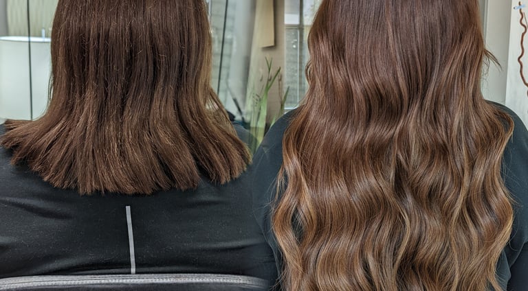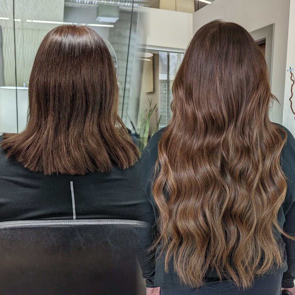 Add density, volume, length and color using Kesh Hair Extension micro wefts. Installed meticulously with a row of beads that evenly distributes the weight of the weft throughout the row. Each install has a customized placement that works with your head shape and lifestyle. Maintenance services are every 6-8 weeks on average and client are highly encouraged to prebook their appointments to ensure the health of their scalp and hair. Choosing length from 18", 22", and 24" to completely transform your look and change the way you see yourself in the mirror.K-Tip Extensions